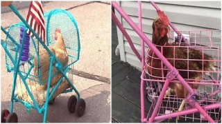 เทรนด์ใหม่! พาไก่นั่งรถเข็นเดินเล่นรอบเมือง