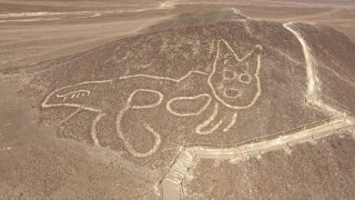 ค้นพบลายเส้นแมวยักษ์ อายุ 2,000 ปี แกะสลักบนเนินเขาที่เปรู