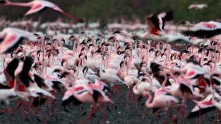 พบฝูงนกฟลามิงโกหลายพันตัวอพยพสู่เมืองมุมไบ จนเปลี่ยนท้องฟ้ายามเช้าให้เป็นสีชมพู!