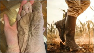 ชายหนุ่มโชว์ภาพเท้าเปื่อยยุ่ย หลังจากสวมรองเท้าบูทเปียกๆนาน 10 ชั่วโมง