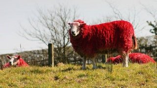 ไม่เหมือนที่ไหน! เกษตรกรชาวสกอตแลนด์ย้อมแกะทั้งฟาร์ม ด้วยสีแดงสดใส โดดเด่นเห็นมาแต่ไกล
