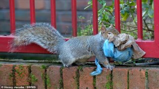 ชีวิตต้องดิ้นรนและปรับตัว! ช่างภาพเผยภาพถ่ายกระรอกเมืองหลวงหอบขยะเพื่อสร้างรัง