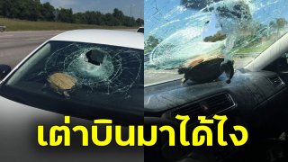 แทบซ็อค!! แม่ลูกเจอเต่าบินทะลุกระจกรถ เจ็บหัวแตก