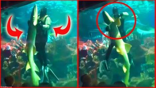 เผยช่วงเวลาที่แปลกประหลาด เมื่อนักประดาน้ำโชว์เต้นรำกับฉลามภายในพิพิธภัณฑ์สัตว์น้ำที่ศูนย์การค้าในรัสเซีย (มีคลิป)