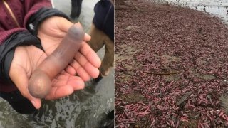 ฝรั่งถึงกับงง! พบสิ่งมีชีวิตประหลาดรูปร่างคล้ายกระจู๋ ถูกคลื่นซัดเกยหาดหลายพันตัว