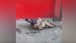 ชาวลอนดอนแตกตื่น! พบงูเหลือมนอนเขมือบนกพิราบริมถนนสายคับคั่ง หลายคนบอกไม่ได้มีให้เห็นบ่อยๆ (มีคลิป)