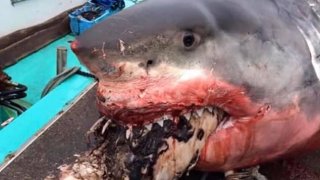 พบซากฉลามขาวยักษ์หนัก 2,000 กิโล นอนตายในตาข่ายขณะมีเต่ายักษ์คาอยู่ในปาก
