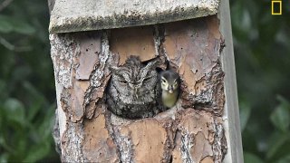 น่าประหลาดสุดๆ ช่างภาพสาวโชว์ภาพแม่นกฮูกเลี้ยงลูกเป็ดในโพรงไม้ภายในสวนหลังบ้าน