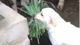 น้องหมาหาหญ้าให้ควายกิน เพื่อนแท้แสนดีต่างสายพันธุ์ ใครเห็นเป็นต้องยิ้ม (มีคลิป)