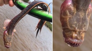 นักตกปลาออสซี่ถึงกับงง! ตกได้ปลาหน้าตาเหมือนเอเลี่ยนรูปร่างคล้ายงูหรือมังกร