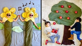 คุณแม่ชาวญี่ปุ่นไอเดียบรรเจิด ! จับสองลูกน้อยนอนจัดฉากออกมาเป็นภาพถ่ายสุดน่ารัก