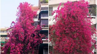 สวยงามตระการตา ต้นเฟื่องฟ้าอายุ 26ปี ออกดอกสีชมพูสวยสูง 100 ฟุต ราวกับน้ำตกดอกไม้