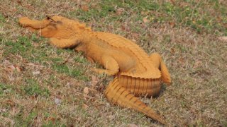ฮือฮา!! พบจระเข้ประหลาดมีสีส้มคล้ายฟักทองโผล่ริมสระน้ำในรัฐเซาท์แคโรไลนา