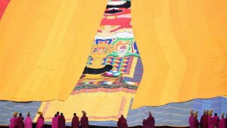 อลังการ! ทิเบตจัดพิธี 'อาบแดดพระพุทธ' ณ เนินเขาวัดลาบรัง