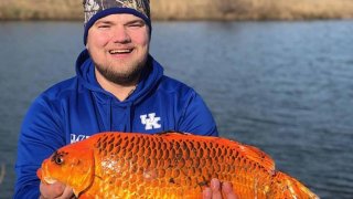 ฮือฮา! วัยรุ่นมะกันจับปลาทองตัวยักษ์น้ำหนัก 20 ปอนด์ได้ แค่ใช้บิสกิตเป็นเหยื่อล่อ