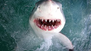 เสียววาบ! ฉลามขาวพุ่งเข้าหากล้อง ห่างเพียงไม่กี่นิ้ว