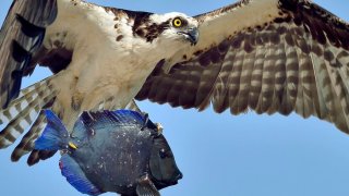 บังเอิญว่าโชคดีมาก! วิศวกรวัย 50 ปี ถ่ายภาพเหยี่ยวออสเปรขณะล่าเหยื่อตัวใหญ่เหนือชายหาดได้