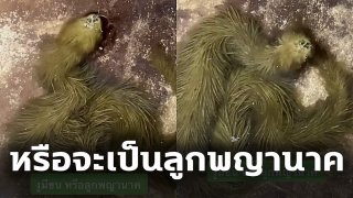 พบ "งูมีขน" รูปร่างและการแลบลิ้น เหมือนงู แต่มีขนยาว สีเขียว หรือจะเป็นลูกพญานาค