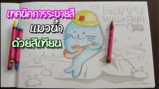 เทคนิคการระบายสี "แมวน้ำ" ด้วยสีเทียน The painting technique "seal" with crayons.