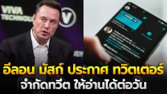 "อีลอน มัสก์" ประกาศ ทวิตเตอร์จำกัดทวีตให้อ่านได้ต่อวัน บอกพักเสพสื่อและควรออกไปข้างนอกบ้าง
