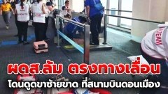 สุดช็อก! ผู้โดยสารหญิงล้มถูก "ทางเลื่อน" กลางสนามบินดอนเมือง ดูดขาซ้ายขาด
