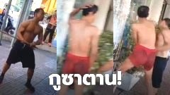 คลิปว่อนโซเชียล! "หนุ่มหัวร้อน" คว้าไม้ฟาด "คนสติไม่ดี" สนั่นโวยลั่นปากคลอง กูซาตาน