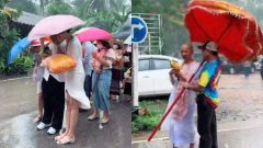ฝนตกลมแรงเราก็ไม่หวั่น! แม้ตาลปัตรปลิวก็ไม่ใช่อุปสรรค คนจะบวชอะไรก็หยุดบุญไม่ได้