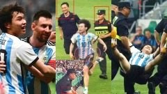 "แฟนบอลชาวจีน" วิ่งลงสนามเข้าไปกอด "เมสซี" ก่อนถูกจนท.หามออกสนามด้วยความฟิน