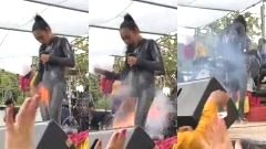 สร้างตำนาน! "เมรัย ไหทองคำ" ใช้ขาหนีบบั้งไฟจิ๋ว แต่จุดติดไฟแล้วพุ่งเข้าหาตัวเอง