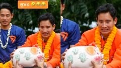 ชาวเน็ตเอ็นดู! "พิธา" รับตุ๊กตาหมู เซรามิคจากประชาชน ถามละทำไมต้องฉีกปากตามว่าที่นายกฯด้วย?
