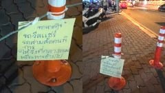 โลกออนไลน์เดือด! เทศกิจวางไม้กั้นปิดทางเท้า เขียนข้อความให้รถวีลแชร์วิ่งกลางถนน