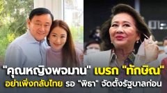 ครอบครัวชินวัตร! "คุณหญิงพจมาน" เบรก "ทักษิณ" อย่าเพิ่งกลับไทย หวั่นถูกหลอกบอกรอ "พิธา" จัดตั้งรัฐบาลก่อน