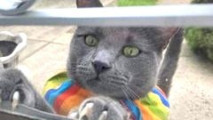 ชายหนุ่มเจอดี หลังย้ายบ้านมาอยู่ใหม่ ถูกแมวข้างบ้านที่ใส่คอลล่าสีรุ้ง กระโดดเกาะหน้าต่าง หวังงัดเข้าบ้านไปทักทาย