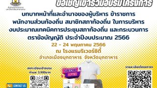 บทบาทหน้าที่และอำนาจของผู้บริหาร ข้าราชการ พนักงานส่วนท้องถิ่น สมาชิกสภาท้องถิ่น ในการบริหารงบประมาณ เทคนิคการประชุมสภาท้องถิ่น และกระบวนการตราข้อบัญญัติ ประจำปีงบประมาณ 2566