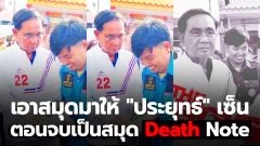 สู่ขิตในวันที่ดือ! เผยคลิปไวรัล หนุ่มกู้ภัย เอาสมุดมาให้ "ประยุทธ์" เซ็นชื่อพีคตอนจบเป็นสมุด Death Note ชาวเน็ตแซวสนั่น เรียบร้อยอีก 1 ราย