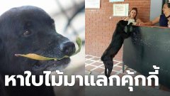 "น้องหมา" หาใบไม้สีต่างๆมาแลกคุ้กกี้ หลังเห็นมนุษย์ใช้กระดาษแลกคุ้กกี้แสนอร่อยได้