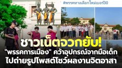 ชาวเน็ตจวกยับ! "พรรคการเมือง" คว้าอุปกรณ์จากมือเด็ก ไปถ่ายรูปโพสต์โชว์ผลงานจิตอาสาทำความสะอาด