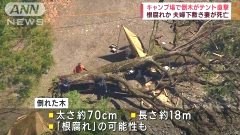 เกิดเหตุต้นไม้ใหญ่ล้มทับเต้นท์คนในเต้นท์ดับคาที่