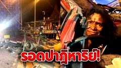 รอดปาฎิหาริย์! หนุ่มขับกะบะขนของเก่านั่งอมยิ้ม หลังเสยท้ายรถขนเป็ด