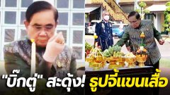 "บิ๊กตู่" สะดุ้ง! ถูกธูปจี้แขนเสื้อ ขณะปักธูปบวงสรวงพิธีครบ 136 ปี สักการะ "ศาลเจ้าพ่อหอกลอง"