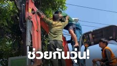 ช่วยกันวุ่น! ชายถูกลอตเตอรี่เลขหน้า 3 ตัว มาขึ้นรางวัล 4,000 บาท รับฉลองหนักไปหน่อยปีนไปนอนบนสายสื่อสาร