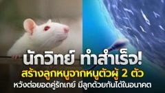 นักวิทยาศาสตร์ชาวญี่ปุ่นสร้าง "ลูกหนู" จากพ่อหนูตัวผู้ 2 ตัวได้สำเร็จ ทำให้มีความหวังที่คู่รักเพศชายจะมีลูกด้วยตนเองได้ในอนาคต