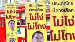 ป้ายหาเสียง ประเทศไทยไม่มีทางเลือก ไม่โง่ ไม่โกง