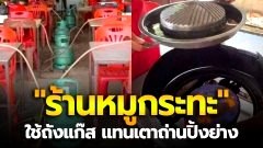 โซเชียลถกสนั่น! "ร้านหมูกระทะ" ใช้ถังแก๊สแทนเตาถ่านปิ้งย่าง พนักงานเผยทำมานานกว่า 1 ปีแล้ว