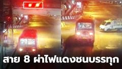 เปิดคลิป! นาทีรถเมล์สาย 8 ฝ่าไฟแดงชนรถบรรทุก แยกรัชดาลาดพร้าว
