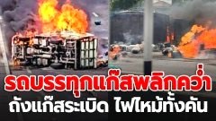 เหตุด่วน! รถบรรทุกพลิกคว่ำ ถังแก๊สระเบิด ไฟลุกท่วมทั้งคัน