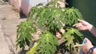 ฮือฮา!! ต้นมะละกอ โผล่พื้นปูน ออกลูกดก แถมให้หวย