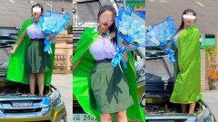 แห่แชร์!! สาวจบ ม.6 ถ่ายรูปฉลอง ยืนบนรถ สไตล์แม่ย่านาง