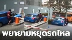 แห่แชร์!! หนุ่มพยายามหยุดรถไหล แต่ดันพุ่งออกถนน น่ากลัวมาก