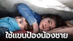 เด็กหญิงวัย 10 ขวบ ใช้แขนป้องน้องชาย อยู่ใต้ซากแผ่นดินไหว นาน 17 ชม.